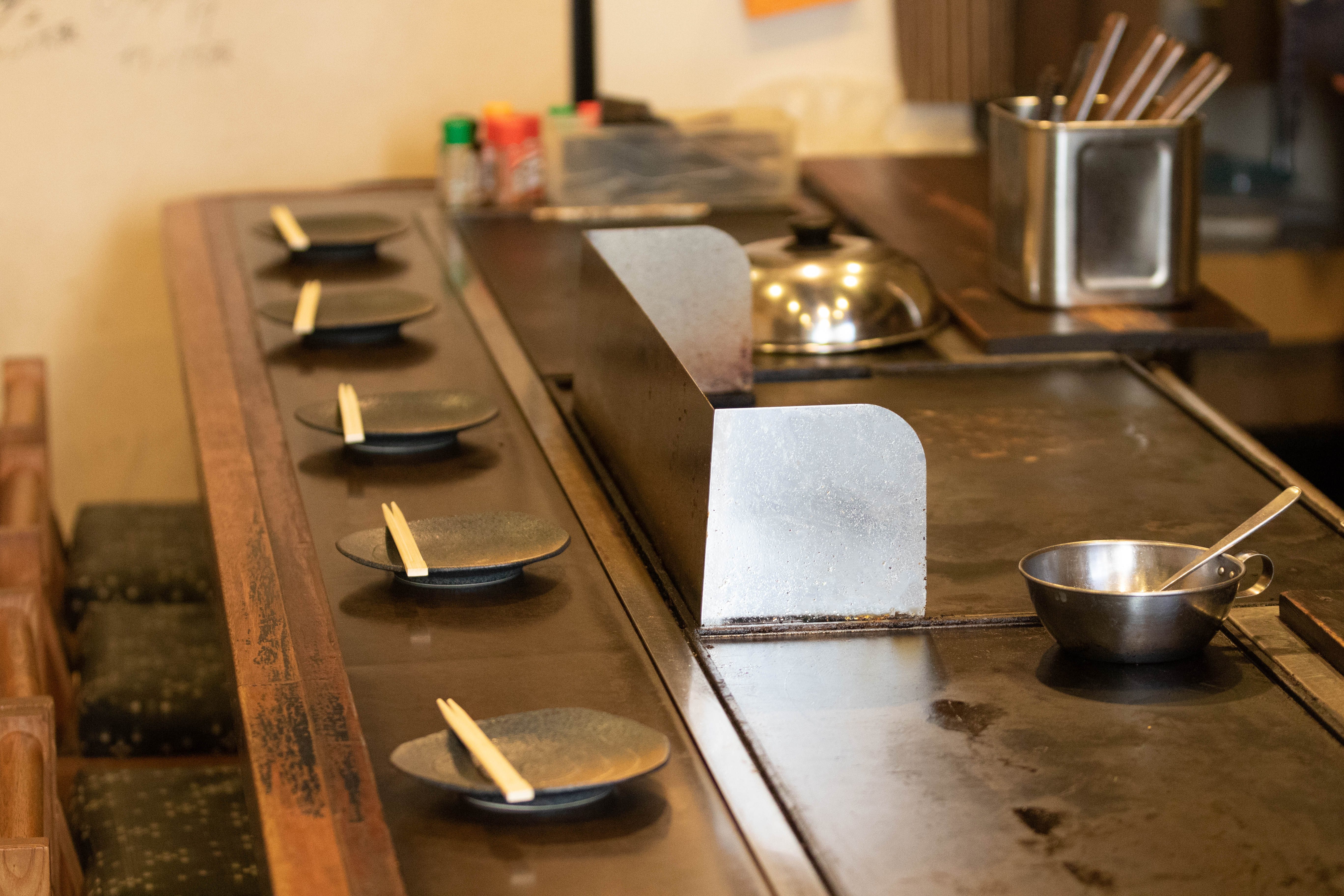 カウンターのみの目の前で焼く一品、お好み焼きは絶品